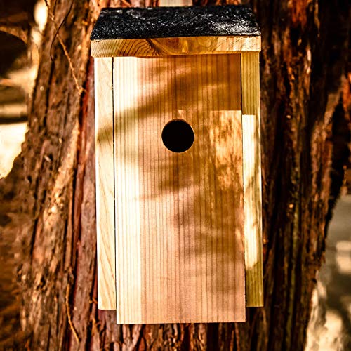 ✅ SOLIDE UND SICHER – Dank der Aufhängevorrichtung kannst du den Vogelkasten an Wänden, Baumstämmen oder Holzmasten anbringen (idealerweise in 2-3m Höhe). Das überstehende Asphaltdach schützt die Vögel vor Regen. Selbstverständlich ist der Brutkasten aka nesträubersicher!
