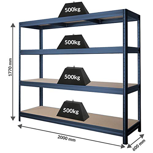 Certeo Stabiles Schwerlastregal | Tragkraft bis zu 500 kg pro Fachboden | HxBxT 1770 x 2000 x 600 mm | Kellerregal…