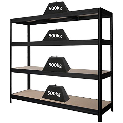 Certeo Stabiles Schwerlastregal | Tragkraft bis zu 500 kg pro Fachboden | HxBxT 1770 x 2000 x 450 mm | Kellerregal…