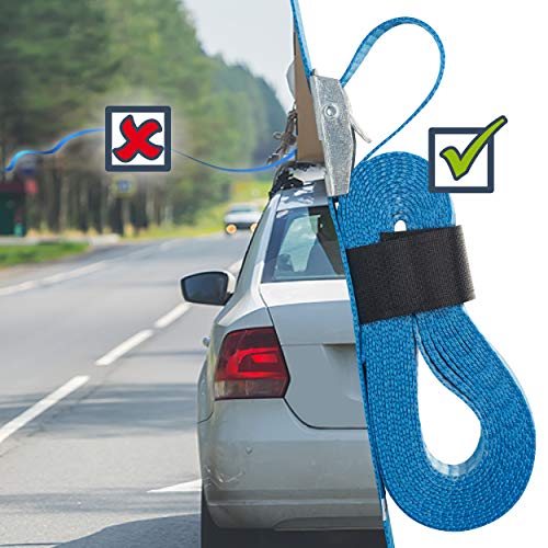 👌 PRAKTISCH: Befestigung und schnelle Varietät. Das Klettband zur klemmschloss hin hält sie aufgerollt, wenn sie nicht benutzt werden, und hält den überschüssigen Gurt, wenn er benutzt wird. Keine verwickelten oder im Wind fliegenden Gurte mehr! Die unter Einsatz von aufgebraucht Tasche mitgelieferte Trag- und Aufbewahrungstasche verhindert, dass sie im Kofferraum oder in der Garage herumliegen.