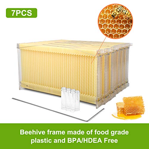 【Honig Auto Flow und Vielseitigkeit Rahmen】 Der Auto-Flow-Honig-Rahmen kann auf bis zu 7 Stück installiert werden und sie sind aus hochwertigem, sicherem Polypropylen. Sie müssen andererseits das Ernteröhrchen abschütteln, dann den Honigschlüssel in die Lücke stecken und ihn auf 90 Grad drehen, der Honig fließt automatisch aus dem Kamm heraus. Sie können die Rahmen leicht abschütteln oder installieren und sogar kompatibel mit den meisten Bienenstock-Sets. Die Rahmen können gekürzt werden, um für jedes Bienenhaus zu passen und ermöglichen es Ihnen, Bienenstockzubehör wie Brut- und Honigrahmen zu teilen.