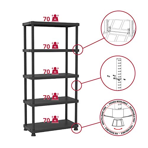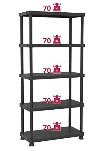 MERKMALE: Kunststoffregal (Polypropylen) mit 5 Einlegeböden. 4 Stützfüße. Maximale Traglast der Einlegeböden von 70kg.