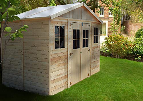 PERFEKT ALS SOMMERHAUS. Dank der Doppeltüren und der Plexiglasfenster, die Reichlich natürliches Licht spenden, ist diese Gartenhütte ein perfektes Sommerhaus. Ihr Grill, der Pool und die Gartenmöbel sind für die heißen Sommertage schnell zugänglich.