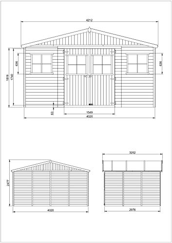 TIMBELA Holz Gartenschuppen MIT IMPRÄGNIERTEM Boden – Abstellkammer mit Fenstern – H246 x 418 x 320 cm/ 12 m² Naturholz…