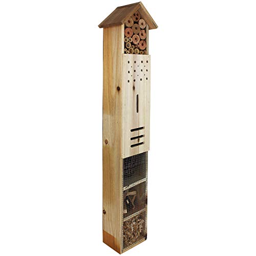ideale Versteck-, Nist- und Überwinterungsmöglichkeiten. Das Insektenhaus besteht alle Holz und