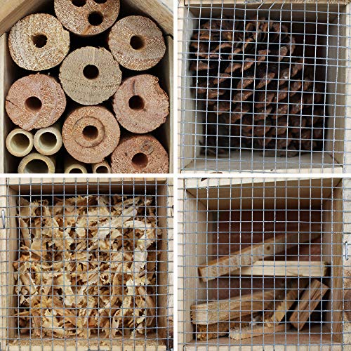 Das Insekten Haus besteht alle Holz und ist via vielen verschiedenen Fächern ausgestattet