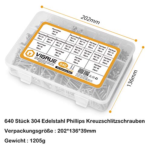 VIGRUE 640PCS M3 M4 M5 Bohrschrauben Schnellbauschrauben 304 Edelstahl A2-70 Schrauben Set Flachkopf Blechschrauben…