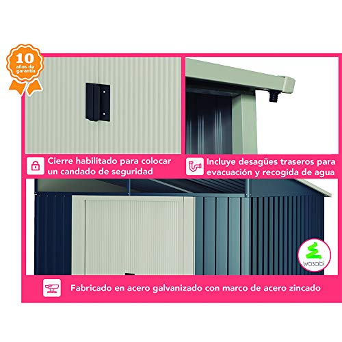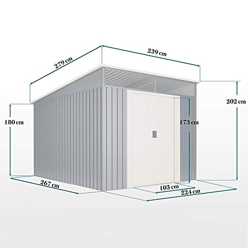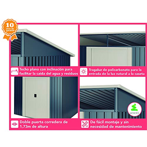 wasabi Stark Gartenhaus, Metallgehäuse, Grau, 6,6 m², 279 x 238 x 203 cm, Garantie 10 Jahre