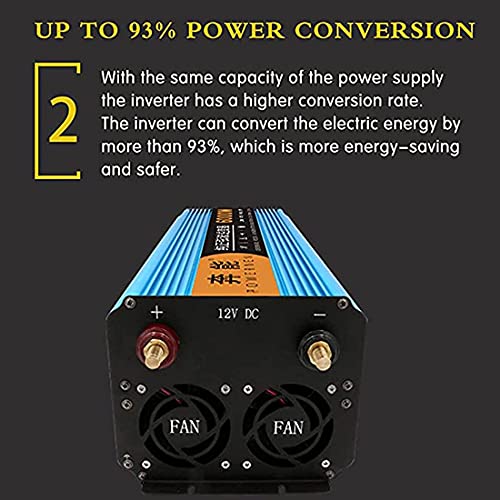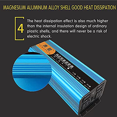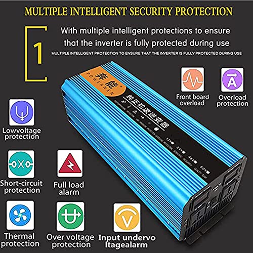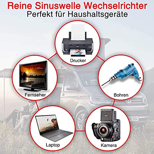 ? 【Reiner Sinus-Wechselrichter】 Dies ist ein echter reiner Sinus-Wechselrichter, abgehärtet und effizient. Es kann 12V/24V DC in 220V AC verbessern. Der Ausgangsstrom gilt für alle Gerätetypen. Machen Sie es zum ultimativen Auto-Reiseladegerät für Fahrten auf der Straße, im Urlaub oder an abgelegenen Arbeitsplätzen.