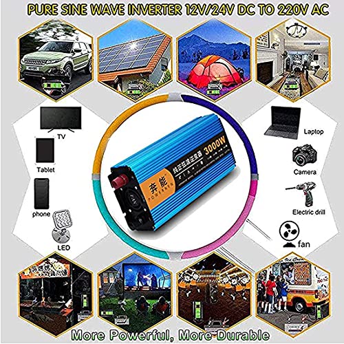 ? 【Reiner Sinus-Wechselrichter】 Dies ist ein echter reiner Sinus-Wechselrichter, leistungsfähig und effizient. Es kann 12V/24V DC in 220V AC ummünzen. Der Ausgangsstrom gilt für alle Gerätetypen. Machen Sie es zum ultimativen Auto-Reiseladegerät für Fahrten auf der Straße, im Urlaub oder an abgelegenen Arbeitsplätzen.