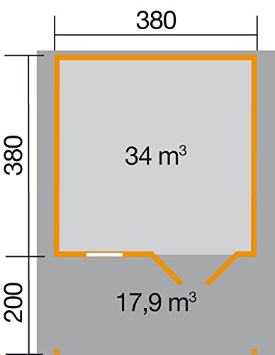 Außenmaß (B x T): 380 x 380 cm Dachstand (B x T): 460 x 560 cm Wandstärke: 28 mm umbauter Kosmos: 3