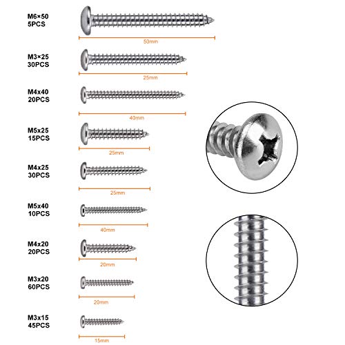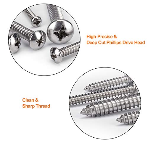 WUNDERBARE HALTEKRAFT: Die selbstschneidende Flachkopfschraube mit tiefem Gewindedesign ist langlebig und robust. Sie bietet eine gute Haltekraft in verschiedenen Materialien und erzielt den Effekt des Verbindens und Befestigens. Es kann den Effekt des Verbindens und Befestigens erzielen. Sie sind perfektes Zubehör für hausgemachte Holzarbeiten. Der Phillips # -Slot ist leicht zu finden und kann installiert werden.