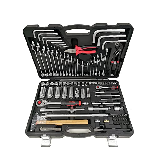 Werkzeugset anstatt Kraftwerkzeug, 107 Teile, professionelle Werkzeuge via lebenslanger Garantie. Inhalt: Vierkant 1/4: 12 Stecknüsse via 12 Stecknüssen: 4 – 4,5 – 5 – 5,5 – 6 – 7 – 8 – 9 – 10 – 12 – 13 mm Ratsche Abänderlich 244 Kauleiste – Verlängerungen 50 – 100 mm T-Henkel 115 mm – Bithalter 1/4 x 1/4 – Allgemeingültig-Kardan 1/4 – flexible Ausweitung 150 mm – Magnetische Stecknuss 25 mm – Schraubendreher 150 mm – 24 Bits (30 mm lang): Einwurfschlitz: 5,5 – 7 mm Philips: PH. 0 – PH.1 – PH.2 – PH.3 Pozidriv-Bits: PZ.1 – PZ.2 – PZ.3 – Sechskant: 2 – 3 – 4 – 5 – 6 – 7 – 8 – 10 mm Bohrungen Torx – T10H – T20H – T25H – T27 – H T30 H – T40H Innenvierkant 1/2: – 12 Stecknüsse 12 Kant 8 – 10 – 12 – 13 – 14 – 15 – 16 – 17 – 18 – 19 – 20 – 21 mm- 5 bereits lange Stecknüsse, 12 Kant – 224 – 27 30 – 30 2 mm – 2 Zündkerzenhülsen 16 – 20,6 mm – Umschaltknarre 24 Kauleiste – Gelenkgriff 380 mm – Ausweitung 50 – 75 – 250 mm – Allgemeingültig-Kardan 1/2 – Zwischenstück anstatt Ausweitung 3/8 x 1/2 – Konstantprofilmeißel 15 mm (180 mm) – Universalzange 175 mm – Wasserpumpenzange 250 mm – Hammer 300 g – Präzisionsklinge, 20 Fragment, Rohrschrauben: 8 x 10 – 10 x 12 – 11 x 13 – 12 x 14 – 17 x 19 mm – Ringmaulschlüssel: 6 – 7 – 8 – 9 – 10 – 11 – 12 – 13 – 14 – 15 – 16 – 16 – 17 – 18 – 19 – 21 – 22 mm – Sechskant-Schraubendreher-Satz : 2.5 – 3 – 4 – 5 – 6 – 7 – 8 – 10 – 12 – 14 mm