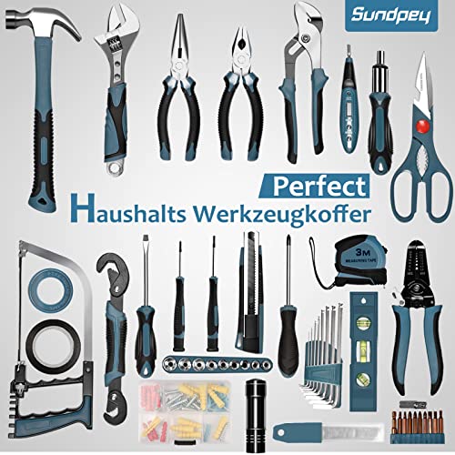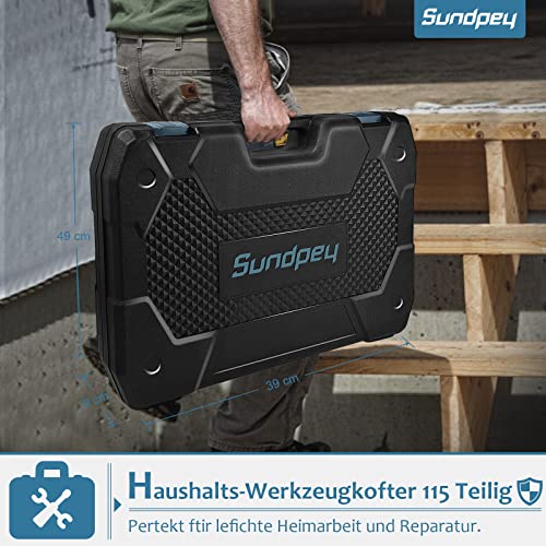 Werkzeugkoffer 115tlg Haushalts Werkzeug Set Gefüllt – Toolbox Werkzeugset Hochwertig Universal Sundpey Schraubendreher…