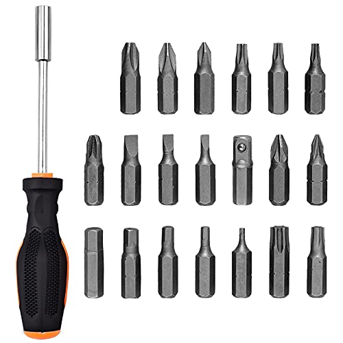 Die 24-Zahn-Ratsche: Die 24-Zahn-Ratsche lässt sich unter Einsatz von einem 5-Stufung-Schalter leicht umschalten. 1/4-Aufwand-schraubendreher-Bits: Kreuzschlitz, Schlitz, Vierkant, Stern und Pozi.