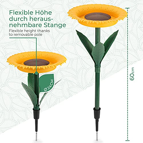 🌻DEKORATIVER FUTTERPLATZ: Dieser stehende Vogelfutterspender im Sonnenblumen-Design ist mit Liebe zum Detail gefertigt und ein Blickfang an Stelle den Garten. Höhe: 60cm