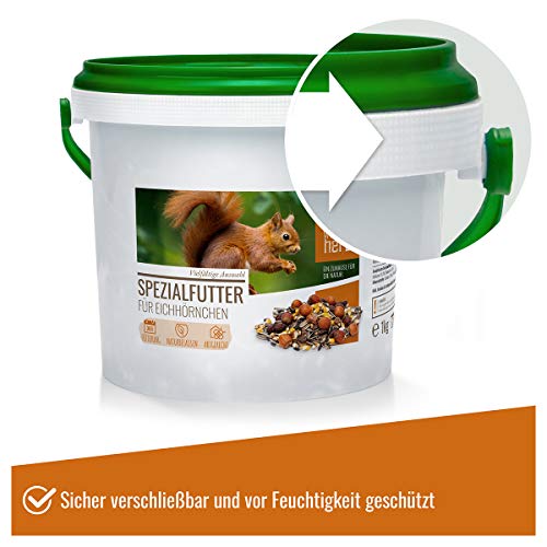 🌰 GANZJÄHRIGE FÜTTERUNG: Dieses Wildtierfutter für Eichhörnchen lässt sich ganzjährig füttern und wird geschützt vor Feuchtigkeit und anderen Nagern im praktischen wiederverschließbaren Eimer geliefert. Verwendbar auch in einer Futterstation bzw. Futterhaus.