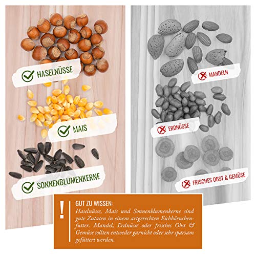 🌰 ARTGERECHTES NATURPRODUKT: Die Futtermischung schafft ein zusätzliches Nahrungsangebot – artgerecht zusammen gestellter Nüsse und Samen jedwederlei und angemessen statt nicht mehr da einheimischen Eichhörnchen und sibirischen Streifenhörnchen. Von Biologen und Artenschützern entwickelt und empfohlen.