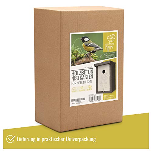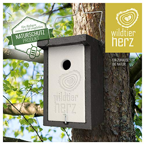 wildtier herz I Holzbeton Nistkasten für Kohlmeisen & Co. – Wetterfeste Nisthöhle mit 32 mm Einflugloch, Vogelhaus…