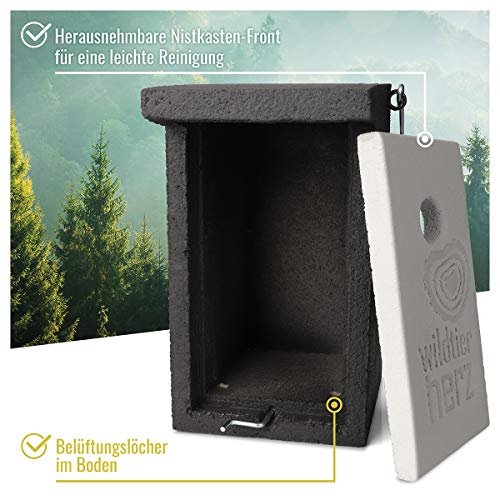 🌳 NACHHALTIG: Die wildtierherz Holzbeton Nistkästen für Vögel setzen sich allesamt Holzspänen, Zement und Wasser zusammen. Das macht sie zu einem langlebigen und artgerechten Naturschutz-Produkt.