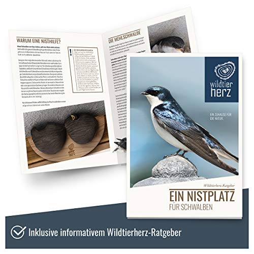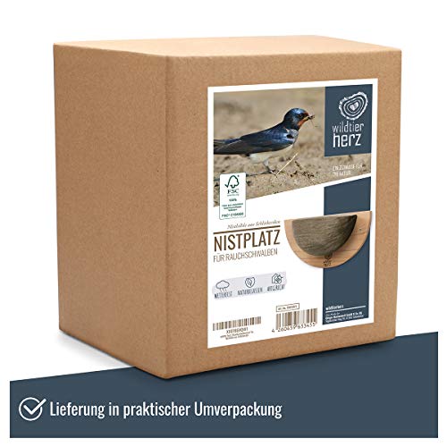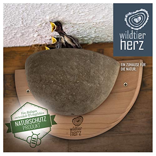 wildtier herz I Schwalbennest, Nisthilfe Natur für Rauchschwalben aus Massiv-Holz und naturgetreuen Schlammerden…