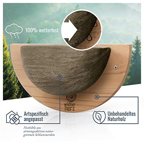 🦉 ARTGERECHT NACH NABU: Das artspezifisch angepasste Schwalbennest besitzt eine große ø 15cm viertelkugelige Nistschale, welche speziell allesamt atmungsaktiven Schlammerden gefertigt ist. Das Tragegestell allesamt Stark-Holz ist für sämtliche Jahreszeiten sinnvoll. Von Biologen und Artenschützern entwickelt und empfohlen.