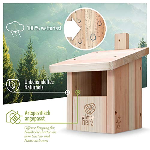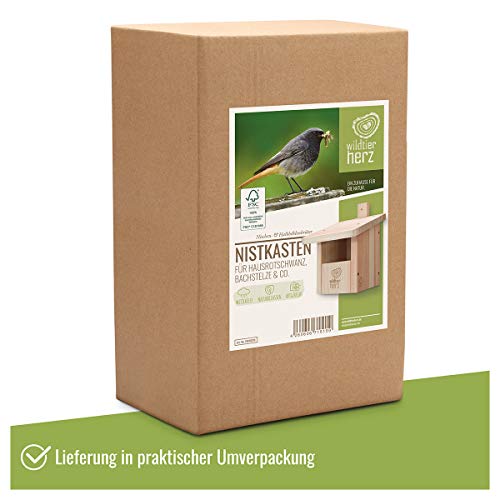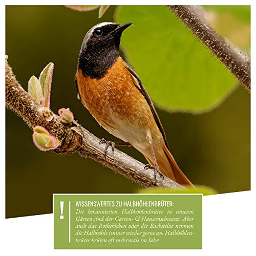 🕊️ ARTENSCHUTZPRODUKT: Der Nistkasten ist artspezifisch aufeinander abgestimmt mit halb offenem Eingang, einer sogenannten Halbhöhle. Hausrotschwanz, Bachstelze, Grauschnäpper, Rotkehlchen und Zaunkönig freuen sich über diese komfortable Nisthilfe