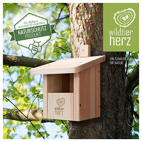 🌲 NACHHALTIGE WALDWIRTSCHAFT: Die wildtierherz Nistkästen anstelle Vögel sind ganz 100% unbehandelten FSC Ausgesprochen-Holz mit verschraubten Holz-Elementen hergestellt. Ein artgerechtes Naturschutz-Produkt. Von Biologen und Artenschützern entwickelt und empfohlen