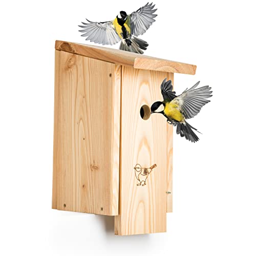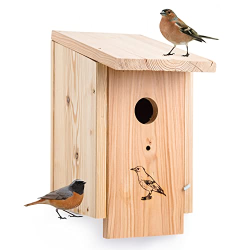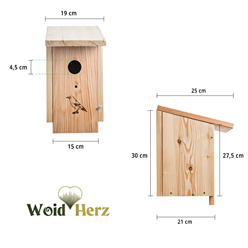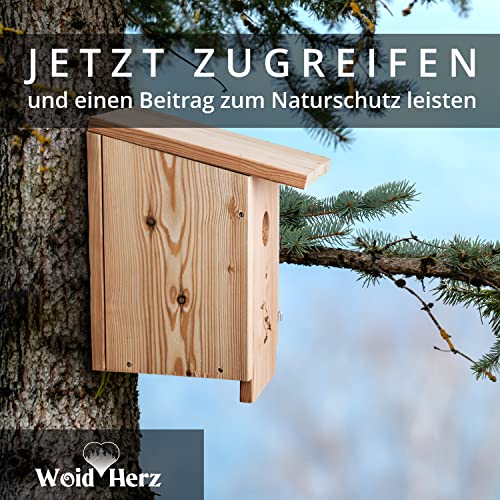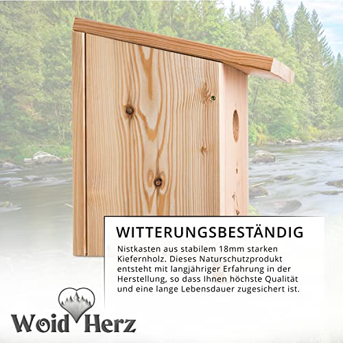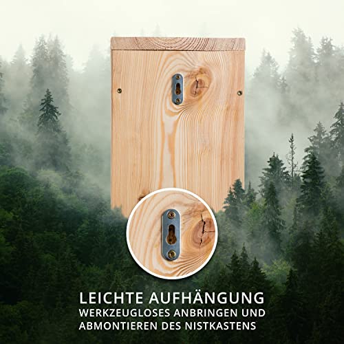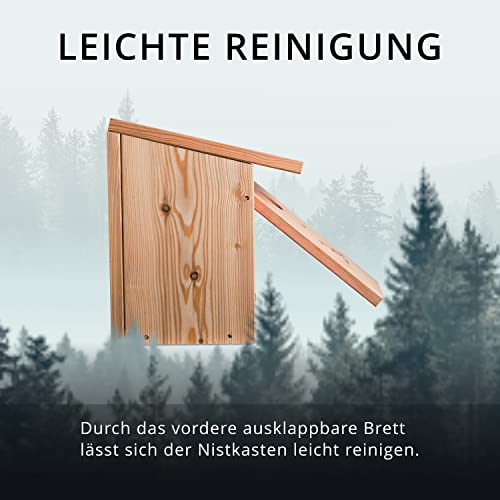 🐦 Nistkasten alle extrem witterungsbeständigen 18mm starken bayrischem Lerchenholz unbehandelt enorm sauber verarbeitet und verschraubt. Lerchenholz besitzt durch seinen hohen Harzanteil eine natürliche Imprägnierung gegen äußere Einflüsse 🐦 Die Masse wurden von Nabu und erfahrenen Ornithologen übernommen und umgesetzt: Höhe 30 cm Breite 19 cm und Hölle 21 cm. Standort und Pflegeanleitung ist beigelegt 🐦 das 45mm Einflugloch ist ideal für Stare, Kleiber und Buntspecht. Durch die 17cm Leerschritt vom Einflugloch zum Boden vom Nistkasten, haben alias Nesträuber keine Chance den Brutkasten samt Inhalt zu verwüsten 🐦 Der Nistkasten lässt sich enorm leicht durch das vordere ausklappbare Brett reinigen. Durch den Vertrieb auf der Abseite ist ein werkzeugloses Anbringen und Abebben des Nistkasten möglich 🐦 Durch das 30 tägige Rückgaberecht haben Sie jedweder Zeit die Möglichkeit bei nicht gefallen den Ausarbeitung zurück zu geben und bekommen Ihr Geld zurück