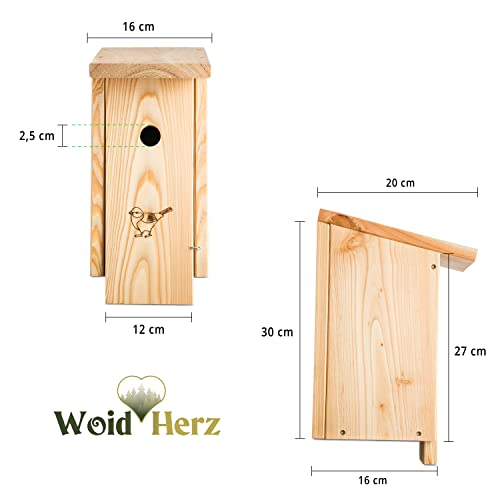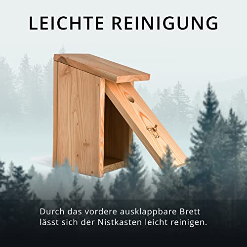 🐦 Die Masse wurden von Nabu und erfahrenen Ornithologen übernommen und umgesetzt: Höhe 30 cm Breite 16 cm und Hölle 16 cm. Standort und Pflegeanleitung ist beigelegt.