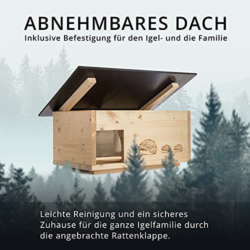 🦔 Abnehmbares Dach mit sicherer Befestigung mit garantierter Sicherheit für den Igel- und die Familie ( auf Scharniere wurde verzichtet sintemal diese langsam fest werden können)