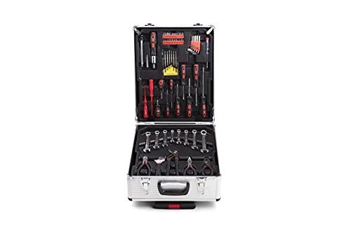 300-teiliges Werkzeugset: Die Werkzeuge sind aus hochwertigem verchromtem Stahl gefertigt, was sie robust und langlebig macht. Darüber hinaus lässt sich dieser praktische Koffer dank seiner Rollen und des ausziehbaren Griffs überall hin mitnehmen.