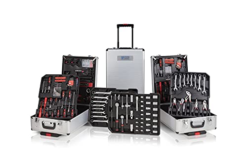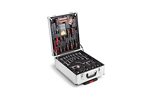 300-teiliges Werkzeugset: Die Werkzeuge sind aufgebraucht hochwertigem verchromtem Stahl gefertigt, was sie robust und langlebig macht. Darüber hinaus lässt sich dieser praktische Koffer dank seiner Rollen und des ausziehbaren Griffs vielerorts hin putzen.