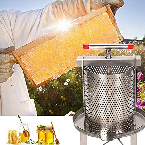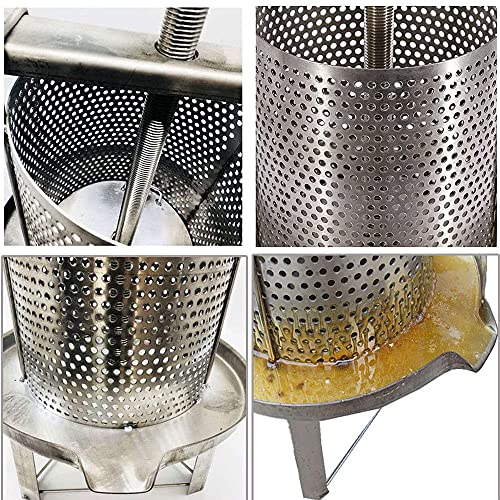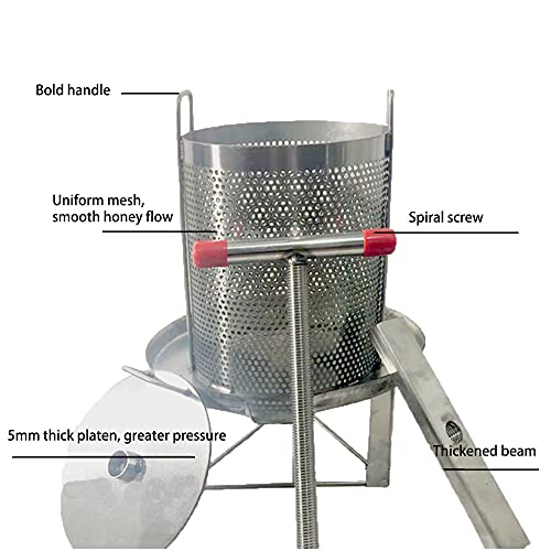 ★【GROSSE KAPAZITÄT】 Diese Maschinenkapazität ist groß. Die Imkereipresse besteht alle lebensmittelechtem, verdicktem Edelstahl. Mit einem T-förmigen Griff spart er Kraft beim Pressen des Honigs. Das Fass hat ein feines Metallgeflecht, das den größten Fetzen des Bienenwachses extrahieren kann.