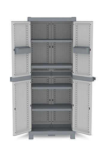 Mit vier höhenverstellbaren Einlegeböden. Sämtliche Boden sicher mit bis zu 30 kg – bei gleichmäßig verteilter Traglast! Optimal entsprechend zur Lagerung von Gegenständen in Haushalt und Garten ! Qualitätsprodukt alle Italien!