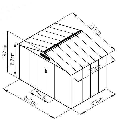 Der Abschuppen ist jedweder lackiertem und verzinktem Stahlblech gefertigt und in einem zeitlosen Design gehalten. Der mitgelieferte Fundament-Rahmen jedweder Metall bietet Stabilität und einen sicheren Stand – Sie haben hier die Möglichkeit einen Boden einzuziehen (Bodenplatten nicht im Lieferumfang enthalten).