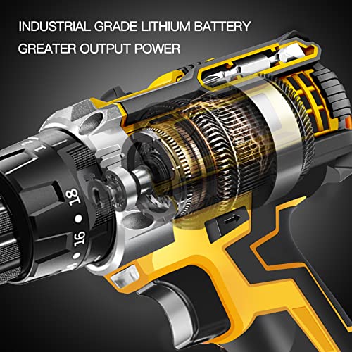 🔨【aufladbare Batterie-Schraubendreher-Set】18V aufladbare Batterie-Bohrmaschine, 18+3 Drehmomenteinstellung, mit drei Arbeitsmodi für Schraubenanzug, normales Bohren und aufladbare Batterie-Bohrhammer, kann das Bohren von Holz, Metall, Kunststoff und anderen Materialien sorgfältig untersuchen und hat eine sichere und Schnellbremsfunktion, qualifiziert für Heimwerker, Hausbau oder Heimwerkerprojekte.