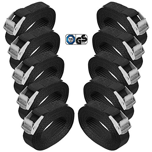 Zurrgurt Spanngurt belastbar bis 250 kg DIN EN 12195-2 Befestigungsgurt Klemmverschluss Befestigungsriemen schwarz Verschiedene Längen Stückzahlen, 10er Pack 2.5 cm x 2.5 m
